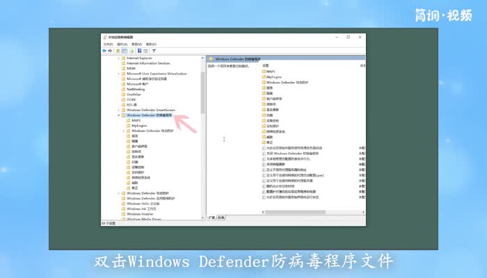 3.在弹出的列表中,双击“Windows Defender杀毒程序”文件,然后双击“关闭Windows Defender杀毒程序”项;