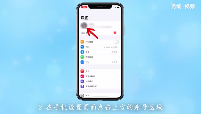 2.点击手机设置页面顶部的账号区域,进入Apple ID页面;