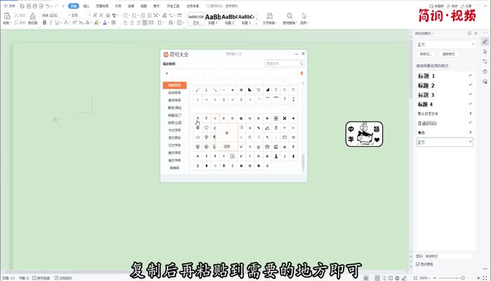 4.单击*符号将其插入到文档中,复制并粘贴到需要的位置。