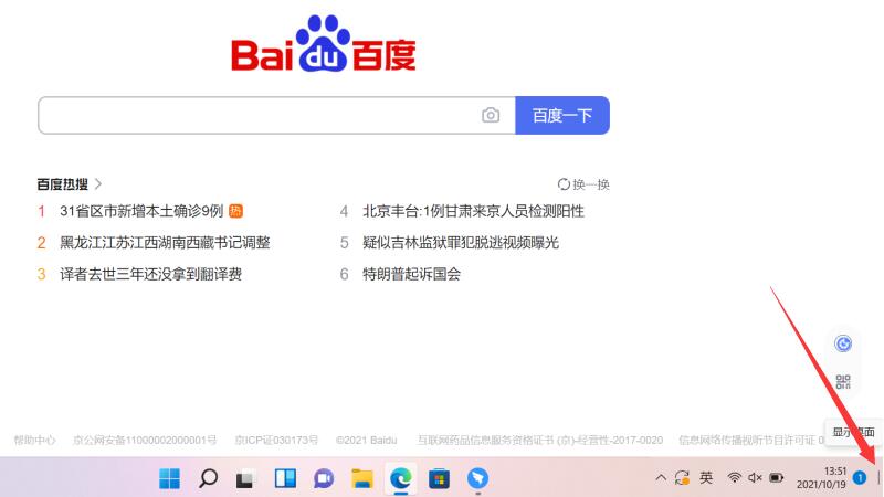 当Windows 11系统返回桌面时,你可以点击任务栏的最右侧或者使用快捷键。以任务栏为例。具体步骤如下: