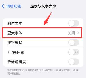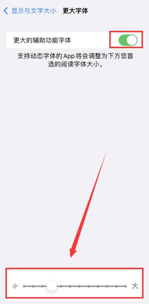 打开“更大的无障碍字体”功能,可以在下面滑动调整字体大小。