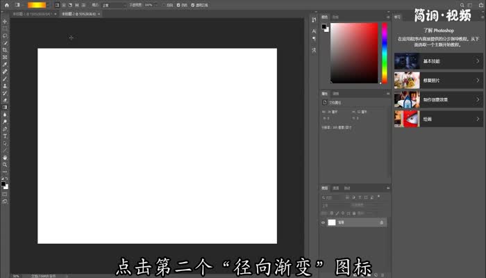 要制作中心渐变,ps只需要先使用渐变工具,然后选择径向渐变模式。具体操作步骤如下: