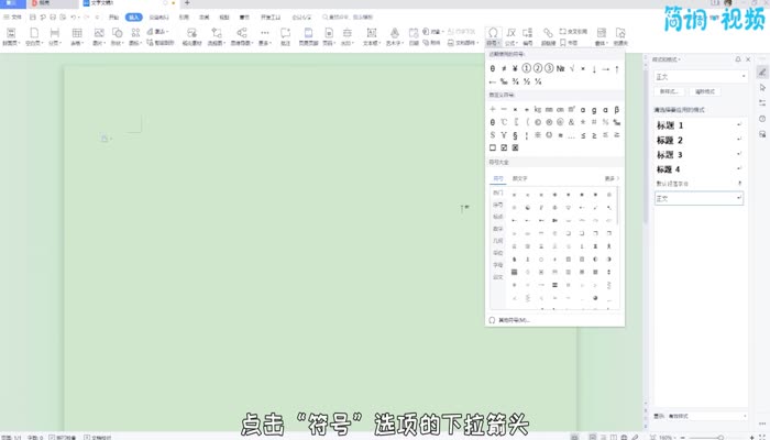 2.在插入的下拉列表中,单击“符号”选项的下拉箭头;