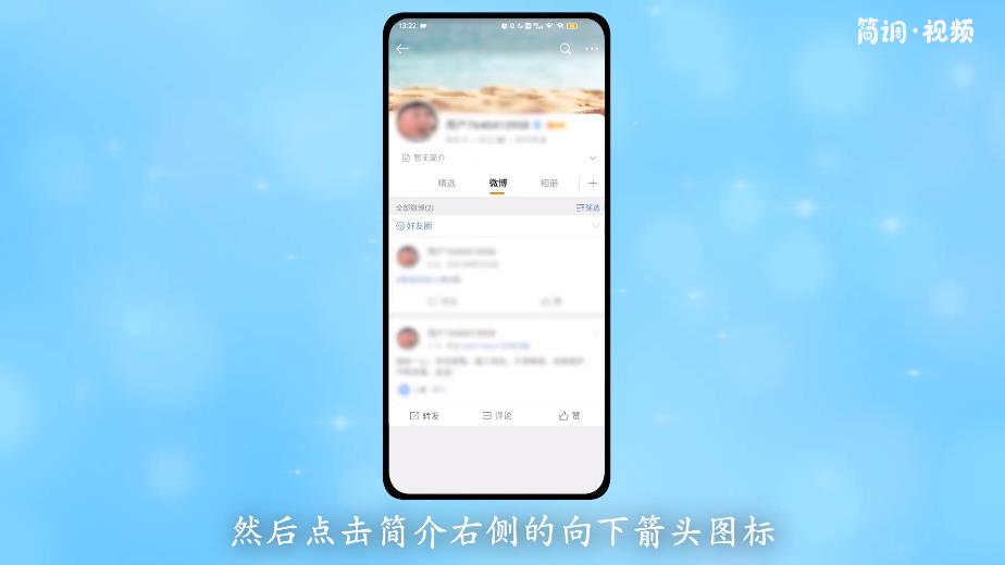 2.进入微博个人页面后,点击他的头像,然后点击简介右侧的向下箭头图标;
