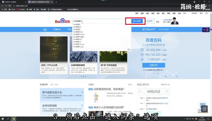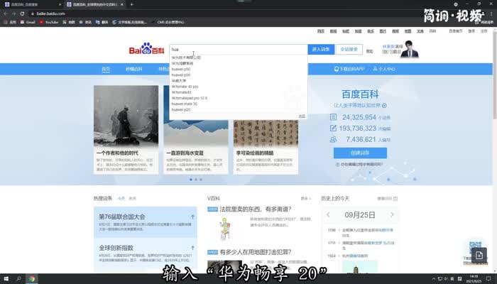 2.进入百度百科后,点击上方搜索栏,输入“华为畅享20”;