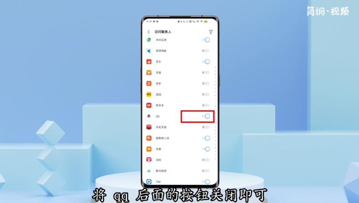 4.单击“访问联系人”选项。进入后,关闭QQ后面的按钮。