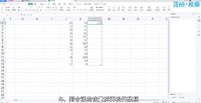 4.到达适当位置后松开鼠标,就可以计算一整行的值,并对整个垂直行求和。