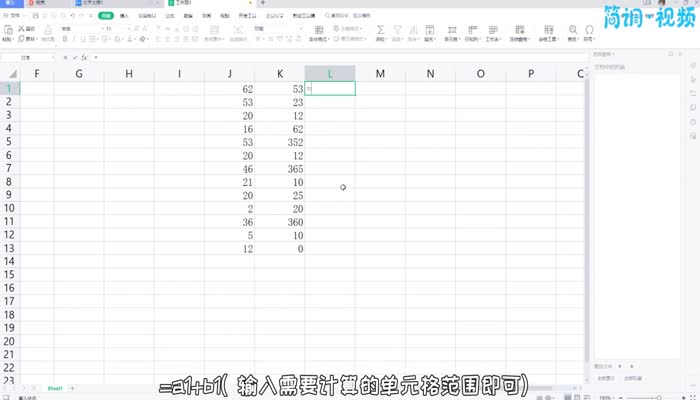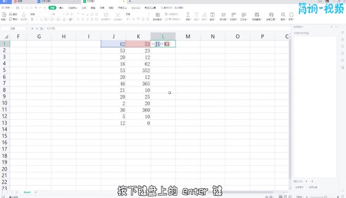 1.打开表格,在单元格中输入求和公式:=A1 B1(只需输入要计算的单元格范围);