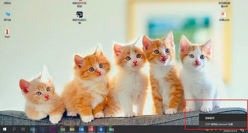 1.用鼠标右键点击网络图标,选择“打开‘网络和互联网’设置”;