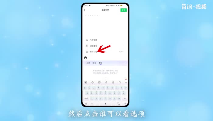 3.进入发布文本页面后,输入内容,然后点击“谁可以阅读”选项;