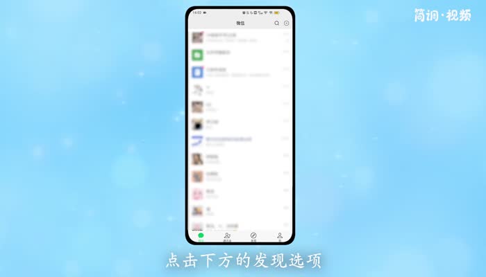 1.打开手机桌面上的“微信”。进入微信后,点击下方的“发现”选项;