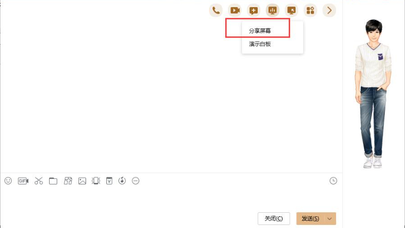 4.最后,点击下拉菜单中的“共享屏幕”按钮。