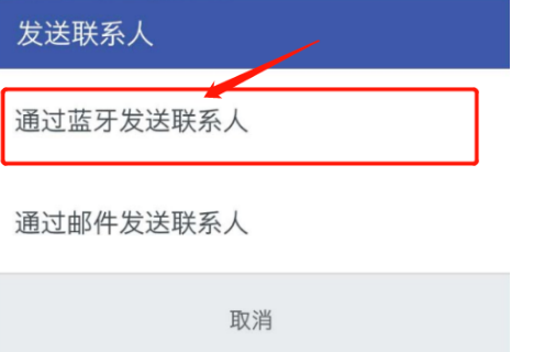 6.然后在弹出窗口中选择“通过蓝牙发送联系人”。