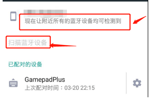 2.然后开启蓝牙功能,选择“扫描蓝牙设备”,开启“附近蓝牙设备可检测”功能。