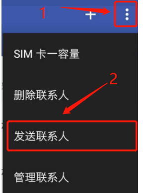 5.打开右上角的通讯录菜单,在菜单中寻找“发送联系人”选项。