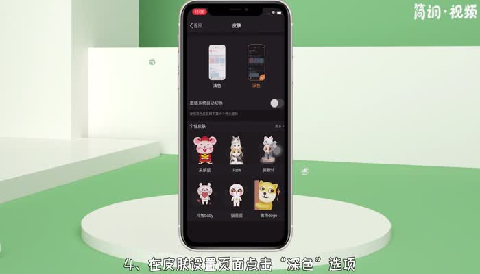 4.点击皮肤设置页面的“黑暗”选项,将微博切换到黑暗模式。