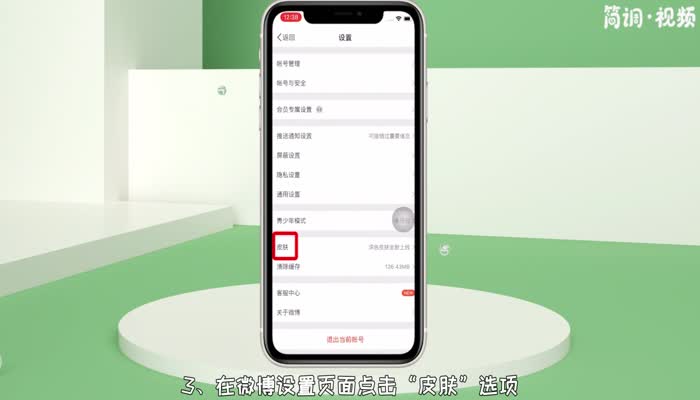 3.在微博设置页面点击“皮肤”选项,进入皮肤设置页面;