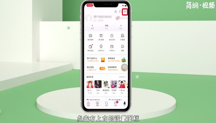 2.在微博个人页面,点击右上方的设置图标,进入微博设置页面;