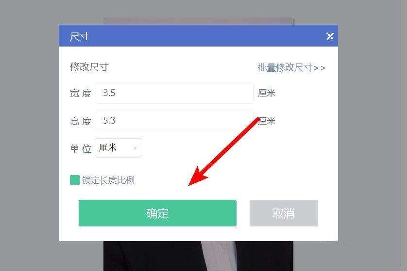 5.删除后,在页面中输入2寸照片的大小,即3.5cmX5.3cm,然后点击确定。