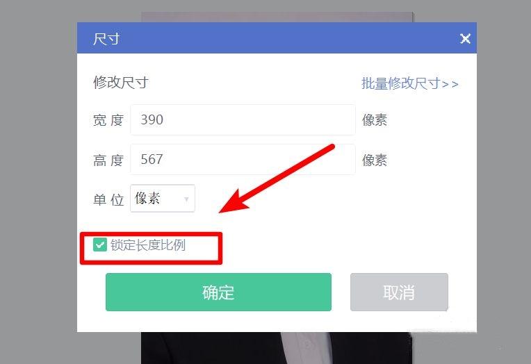 4.单击后,在尺寸修改中,取消锁定纵横比的复选标记。
