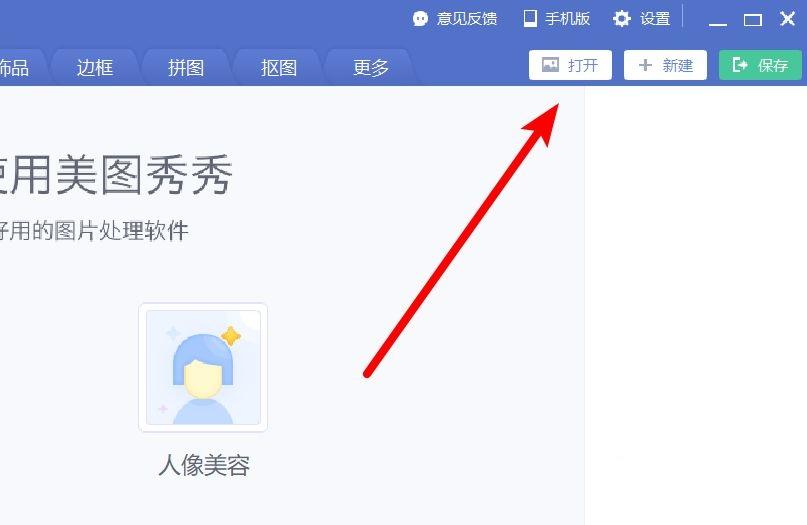 1.打开电脑,进入美图秀秀,点击打开选项。