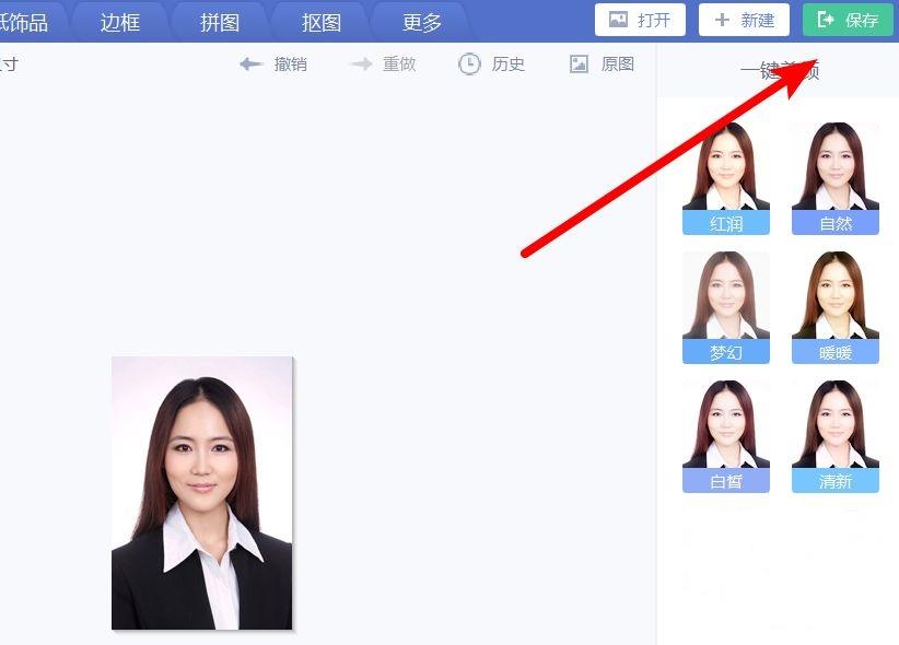 6.确认后照片就变成2寸照片了。点击右上方的保存,操作完成。