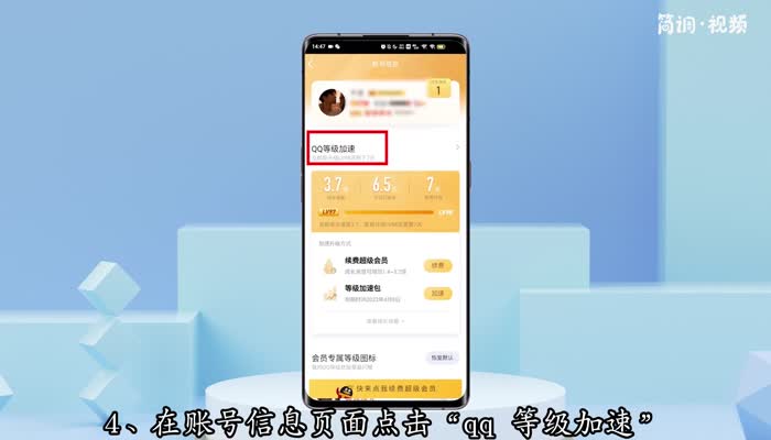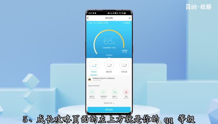 4.在账户信息页面点击“QQ等级加速”进入成长策略页面;
