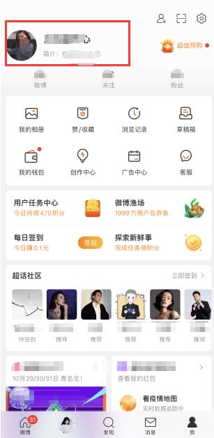 打开微博的用户页面,点击最上方的用户进入。