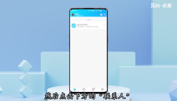 1.在手机桌面打开QQ,进入QQ消息页面,然后点击下方的“联系”进入联系页面;