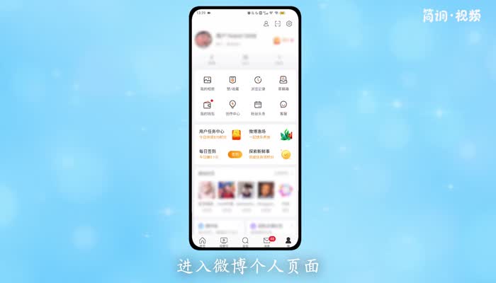 1.打开手机桌面的微博,进入微博后,点击下方的“我”选项,进入微博的个人页面;