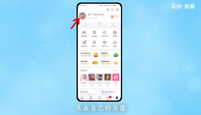 2.进入微博个人页面后,点击他的头像。页面跳转后,单击个人资料右侧的向下箭头图标。