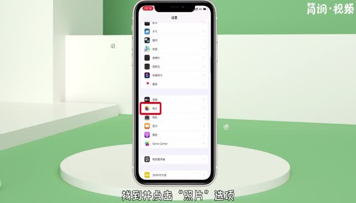 2.滑动手机屏幕,找到并点击“照片”选项,进入照片设置页面;