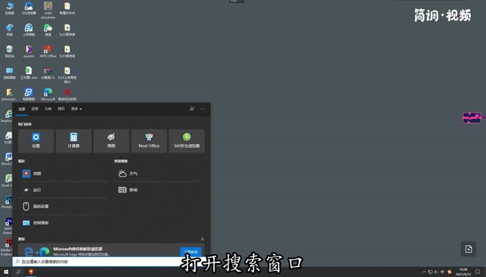 1.用鼠标左键单击任务栏中的放大镜图标,打开搜索窗口;