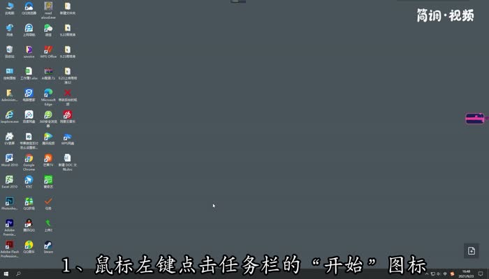 1.用鼠标左键单击任务栏中的“开始”图标;