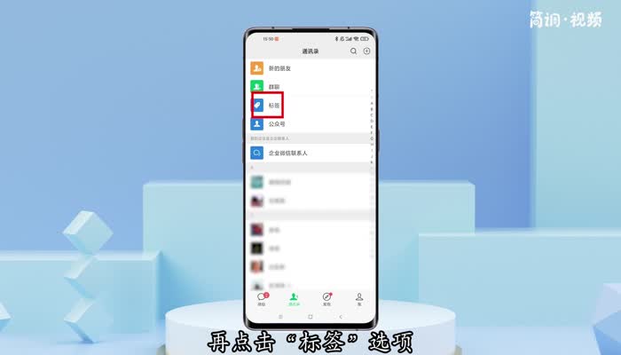 1.打开微信,点击页面的“通讯录”选项,然后点击“标签”选项,进入标签界面;
