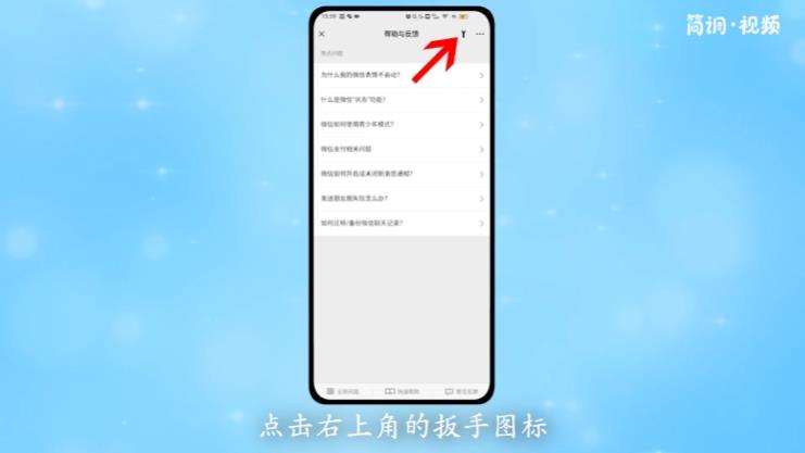 4.进入帮助和反馈页面后,点击右上角的“扳手”图标;