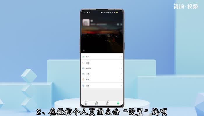 2.在微信个人页面点击“设置”选项,进入设置页面,在设置页面点击“聊天”选项;
