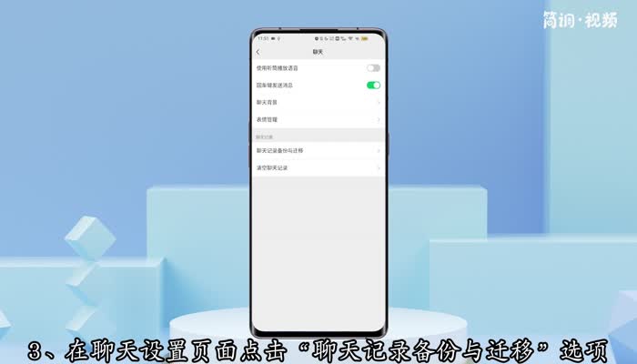 3.在聊天设置页面点击“聊天记录的备份和迁移”选项,然后点击“将聊天记录迁移到另一部手机”;