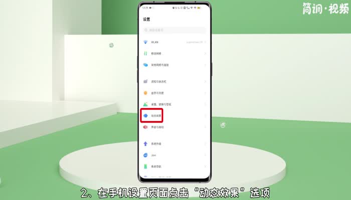 2.在手机设置页面点击“动态效果”选项,进入动态效果页面;