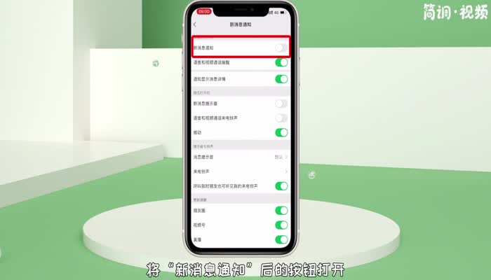 4.在新页面中,打开“新消息通知”后的按钮,可以在锁屏状态下接收新消息通知。