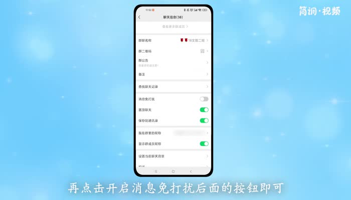 3.在聊天信息界面,找到“消息勿扰”,然后点击打开消息勿扰后面的按钮。