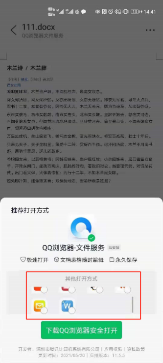 总结:1。以华为p40为例,先在手机上打开微信。2.打开需要打开文件的聊天窗口。3.选择要打开的文件。4.打开文件后,点击右上角的三个点。5.找到要打开的其他应用程序并单击。6.在弹出窗口中,选择所需的打开方法,然后选择始终。
