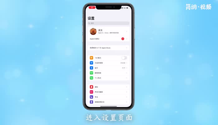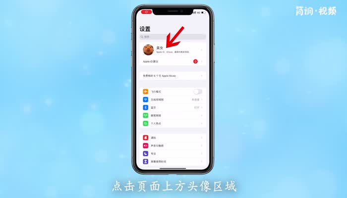 2.进入设置页面后,点击页面顶部的头像区,进入Apple ID页面;