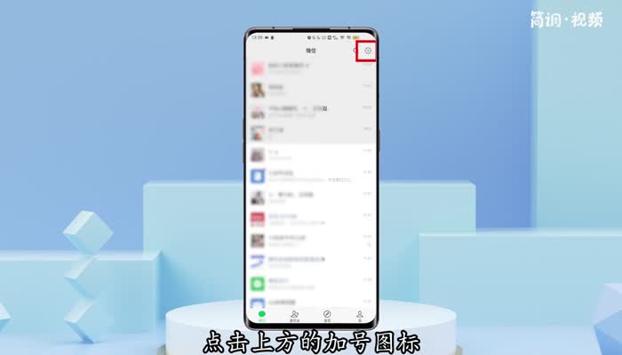 1.打开手机桌面的微信。进入微信后,点击顶部的加号图标;