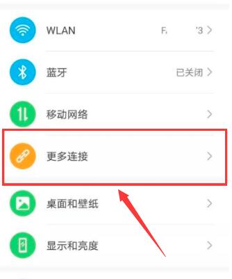 打开华为手机上的设置,下拉找到“更多连接”选项。