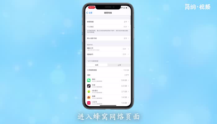 2.进入页面后,点击“蜂窝网络”选项,进入蜂窝网络页面;
