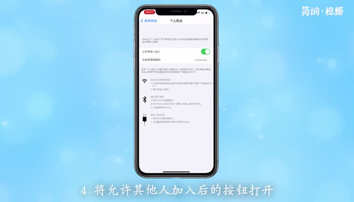 4.打开“允许他人加入”后的按钮打开手机热点;