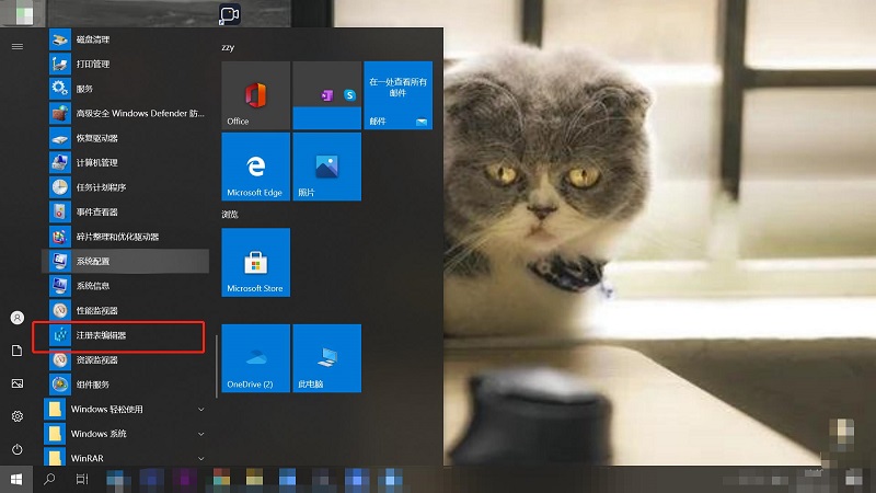 点击“开始”,下拉找到“Windows管理工具”——“注册表编辑器”,打开注册表工具。