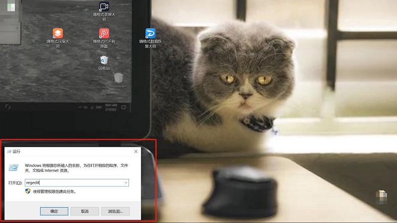 使用“Windows R”组合键调用“运行”对话框并输入“regedit”。