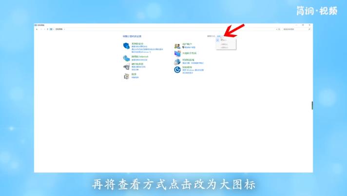 2.进入界面后,点击“控制面板首页”,然后将查看模式改为“大图标”;